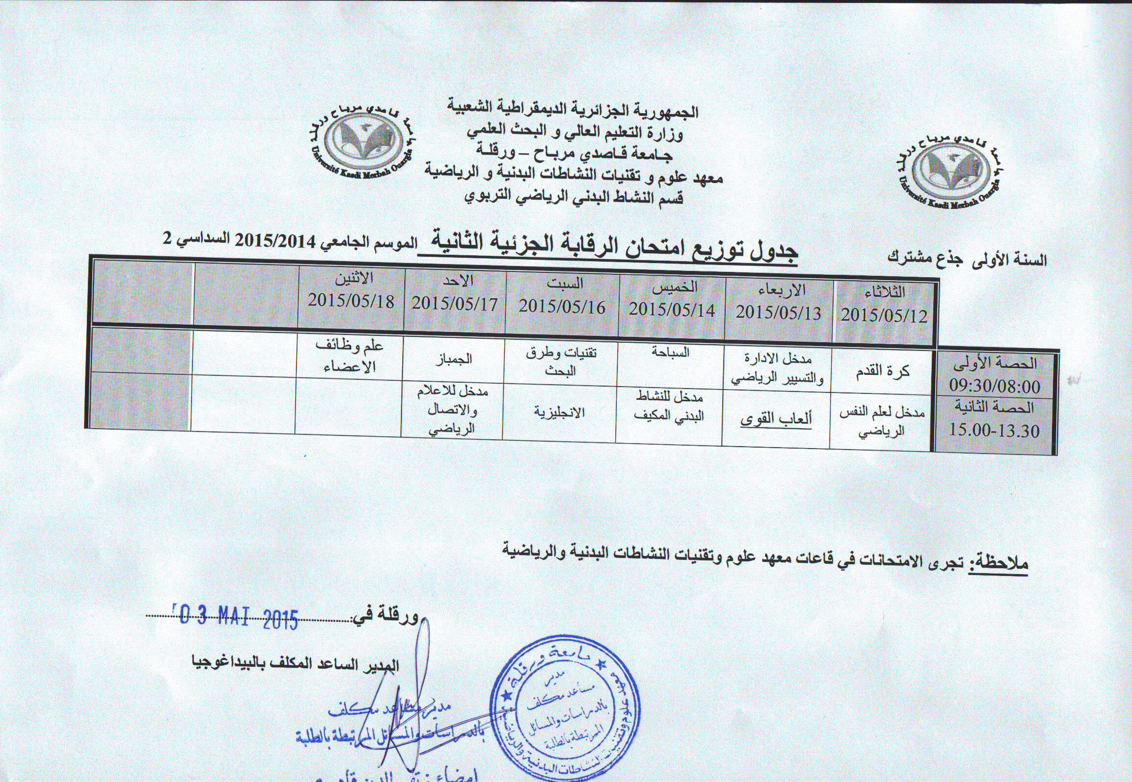 جداول امتحانات السداسي الثاني