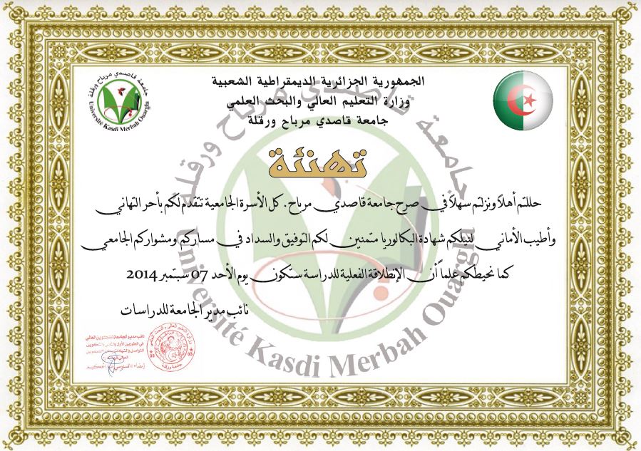 Du 02 au 07 Aout 2014 : Inscriptions définitives auprès de l'université d'ouargla .